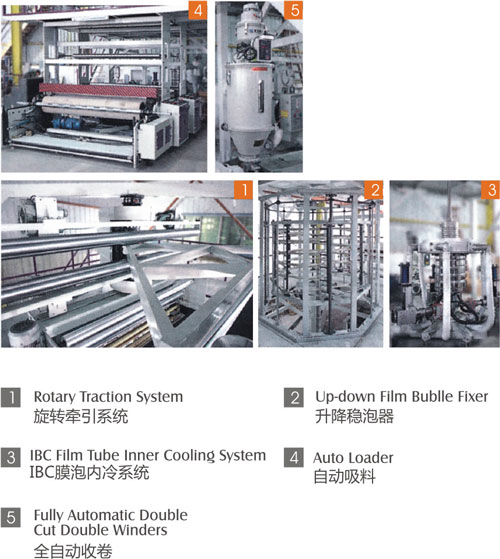 GHSJ-3L1600/3L2000/3L2600 三至五層共擠薄膜吹膜機組 (IBC 膜泡內冷型)